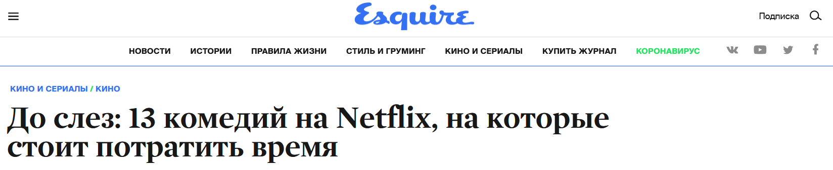 Однако все эти издания с легкостью поборол журнал Esquire, который создал самый идиотский список, озаглавленный "До слез: 13 комедий на Netflix, на которые стоит потратить время".