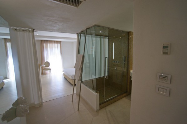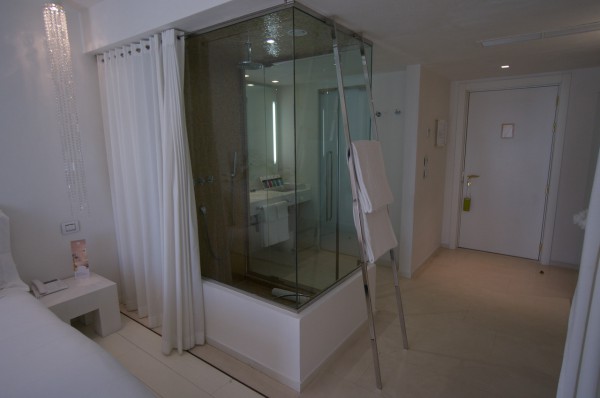 Отель Boscolo Exedra Nice. Симпатичный. Но чересчур, на мой взгляд, дизайнерский. Опять стеклянный душ посреди номера.