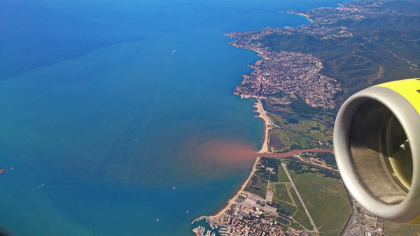 По всей Франции кроме Лазурки сплошные дожди. Реки вздулись, песка и глины очень много. Так что так сейчас любая речка выглядит.