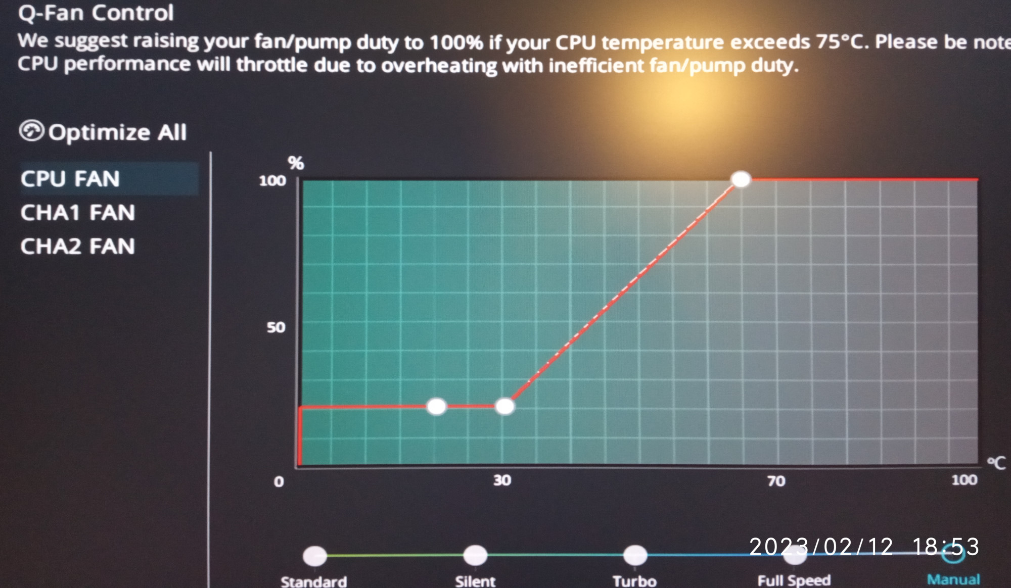 Алекс, для начала стоит таки поставить нормальный кулер вместо боксового (хоть прошлую Noctua), и затем в BIOS вручную настроить кривую кулера, не полагаясь на "авто" режимы, например так: