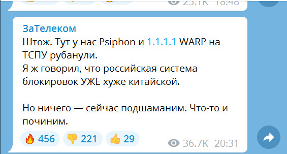 Благодарю за содержательный ответ, но пессимизма так и не понял. Оборудование DPI чье стоит у роскомпозора? Где они теперь будут брать оборудование? Китайцы тоже далеко не дураки, хотя, по информации от моей тучи знакомых китайцев, впнами там пользуются далеко не только маргиналы, а любой считающий себя продвинутым гражданин. Особенно задействованный в цепочке титанического китайского экспорта. Начнут китайцы долбить, например, PPTP - останутся без миллиарда видеокамер - другого способа для айпи камер пробиться из внешки, если они за NAT, практически нет. А в рашке что, дургая ситуация, какие-то другие камеры? Те же самые, от Хика и т.д., с нативным PPTP. Ну, и просто повернуть DPI не получится по той же причине, по которой пришлось от телеграма отстать: даже в условном чебурнете они своего сломают гораздо больше при таких регулировках, чем кому-то что-то запретят. Короче, файрволл у них получится примерно такой же, как и передовой процессор Байкал