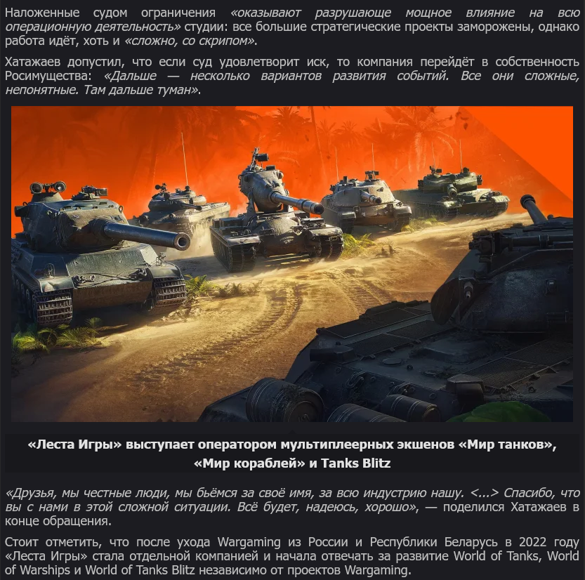 Просто "Танки" в экстремисты попали, ибо пытались сохранить международную аудиторию. А сделай их зетническими - кто покупать-то будет дальше Сызрани?