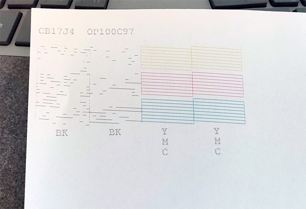 Дня через три включил принтер, запустил прочистку головок, запустил тест. Смотрю - у синего картриджа стали проявляться какие-то синие полунамеки. На следующий день запустил прочистку, после этого запустил тест - полунамеки добавились. Так я развлекался примерно дней десять, после чего синий картридж стал нормально печатать в полном объеме. Ну, подумал я, обошлось.