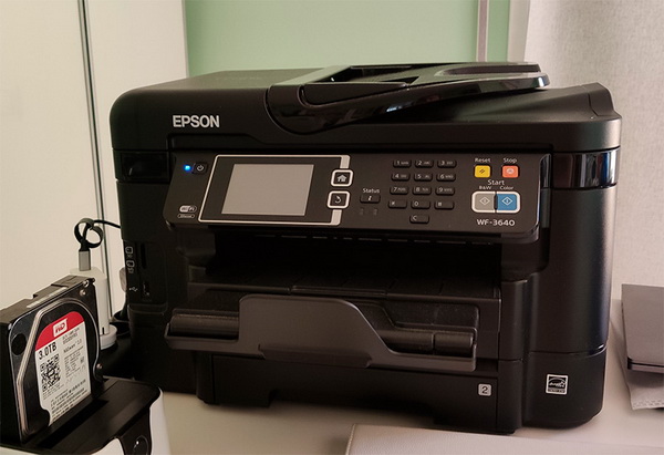 Офисный МФУ Epson WF-3640. После абсолютно угробищного со всех сторон струйника Hewlett Packard, этот Epson был как глоток свежего воздуха. Печатал я на нем не сказать чтобы очень много, но регулярно.