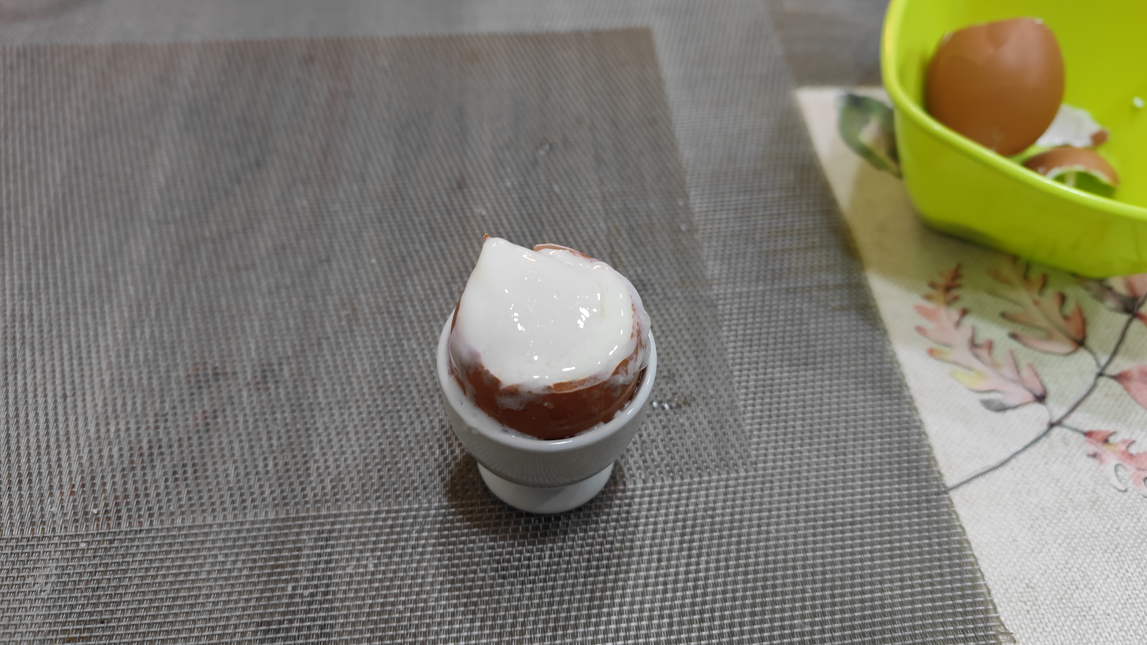 Кто думает, что это яйцо всмятку? Я себе делаю яйца "в мешочек".
