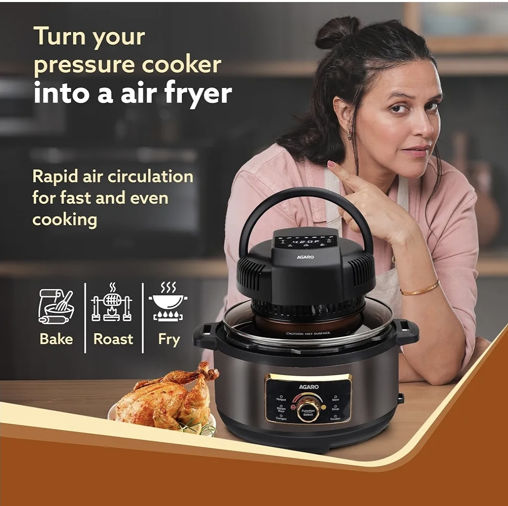 Turn your 5L, 6L and 8L electric pressure cooker to air fryer in seconds to create incredibly tasty, healthy dishes.