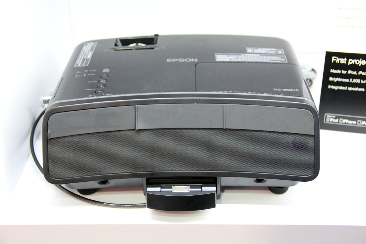 А вот совсем прикольная штука - первый проектор с док-станцией под айподы-айпады-айфоны. Характеристики - похожие на предыдущий проектор. Видимо, все-таки под офисные применения, а то я не очень понимаю, кому дома захочется под потолком айфон в проектор втыкать. Мне точно не захочется. А вот для всяких демонстраций-презентаций, которые все чаще таскают на айпадах - оно, наверное, и пригодится.