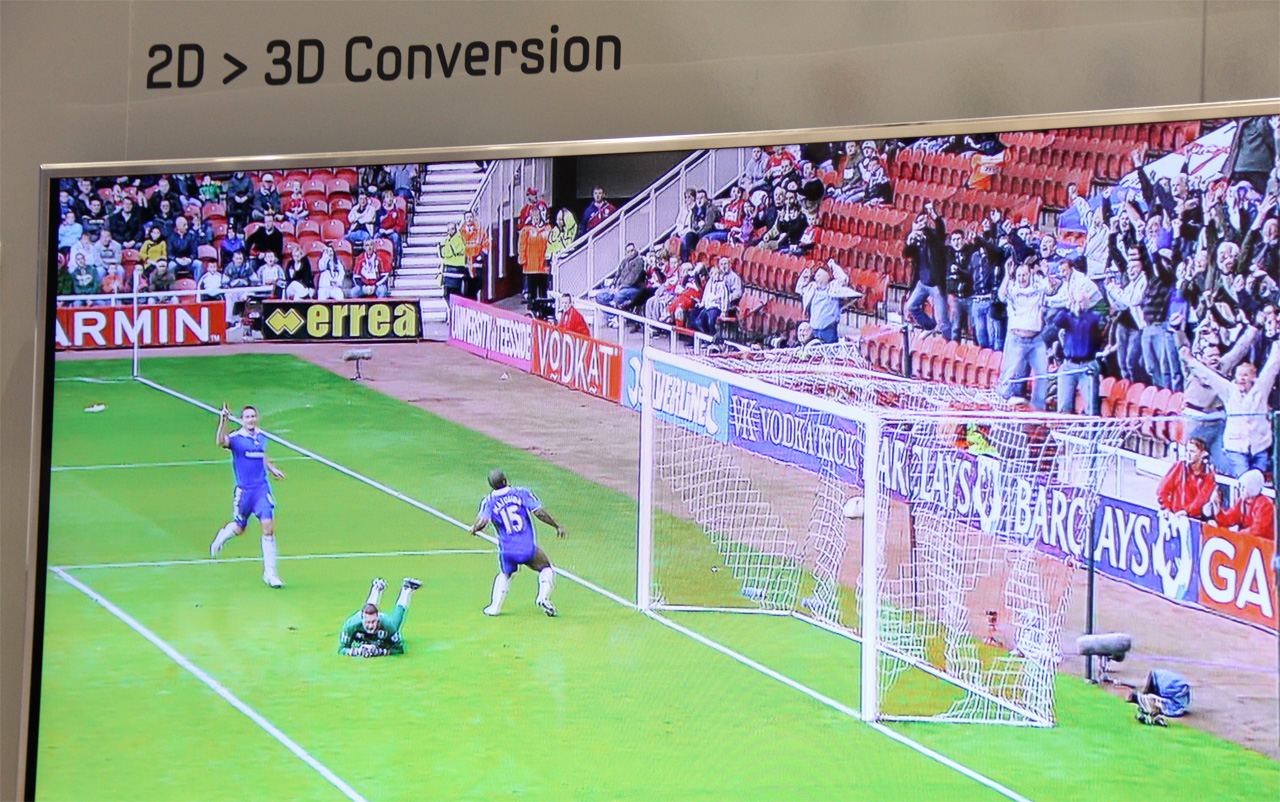 Кстати, о 3D. Посмотрел я панель, на которой производилась конвертация 2D в 3D - показывали обычный футбольный матч. Смотреть надо было в пассивных очках. Выглядело, надо сказать, терпимо, но не сильно понятно, зачем так напрягаться - эффект минимальный, да и смысла не имеет. Другое дело - фильмы, снятые или сконвертированные в 3D. Вот это уже смотрится совершенно по-другому.