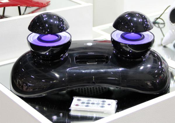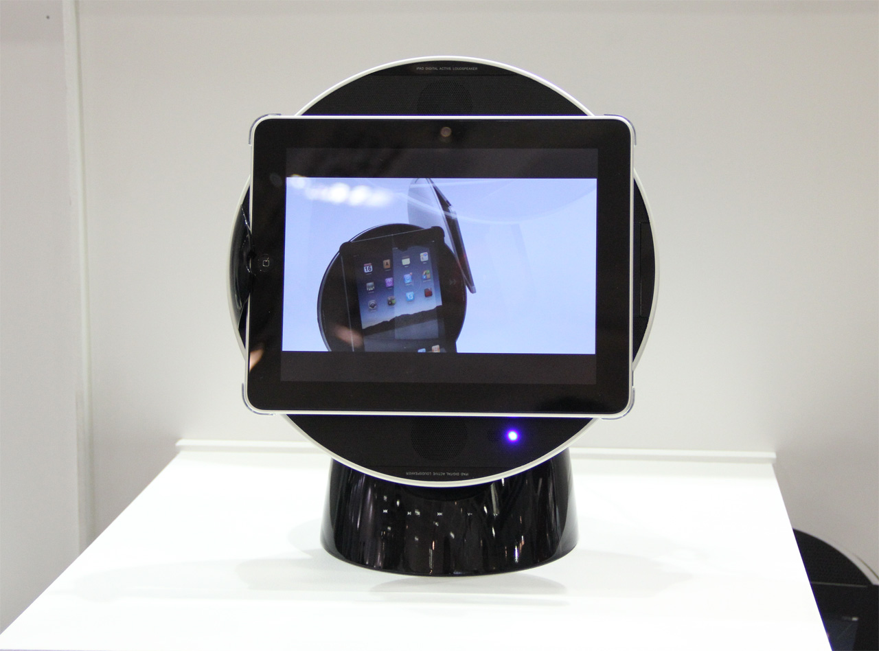 Yamaha показала вот такой интересный док для iPad'а. Вообще док-станций для айфонов-айпадов на выставке было дикое количество. Я сначала хотел их собрать в один пост, но потом подумал, что лучше не концентрировать это дело. Буду вкраплять в другие гаджеты.