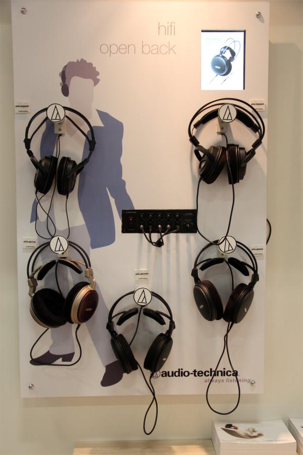 Фирма Audio-Technica (кстати, я именно ее производства себе наушники выбрал) показывала новые модели наушников. Мне понравилось решение с двумя дополнительными "крылышками" под верхней дугой - так они значительно мягче сидят на голове.