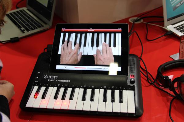 Фирма XION. Интересные музыкальные прибабахи для айпада. Вот, например, компактный тренажерчик для обучения игре на фортепьяно с помощью айпада.