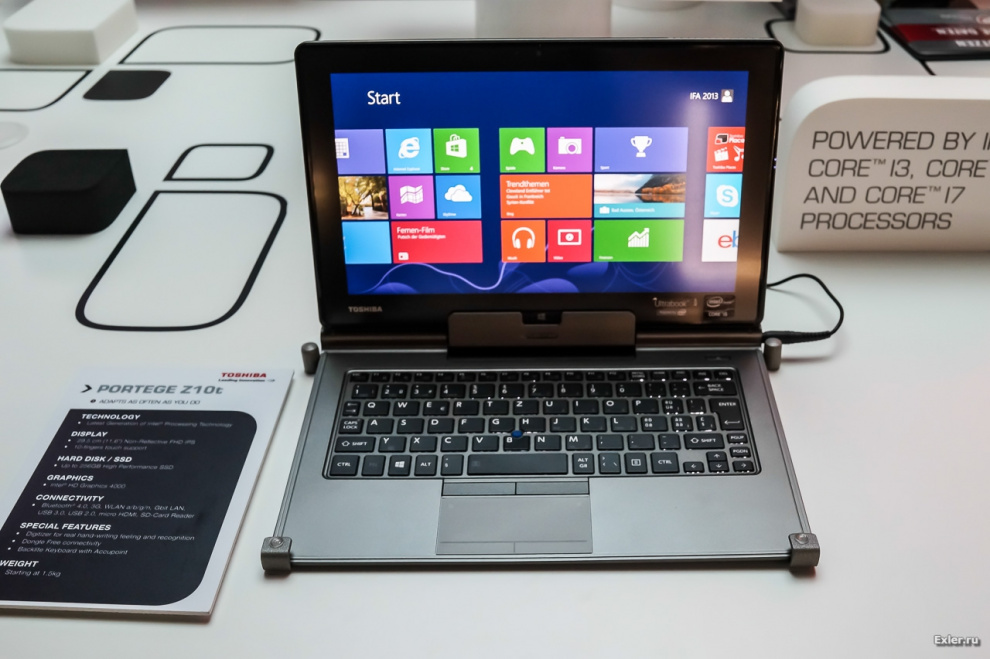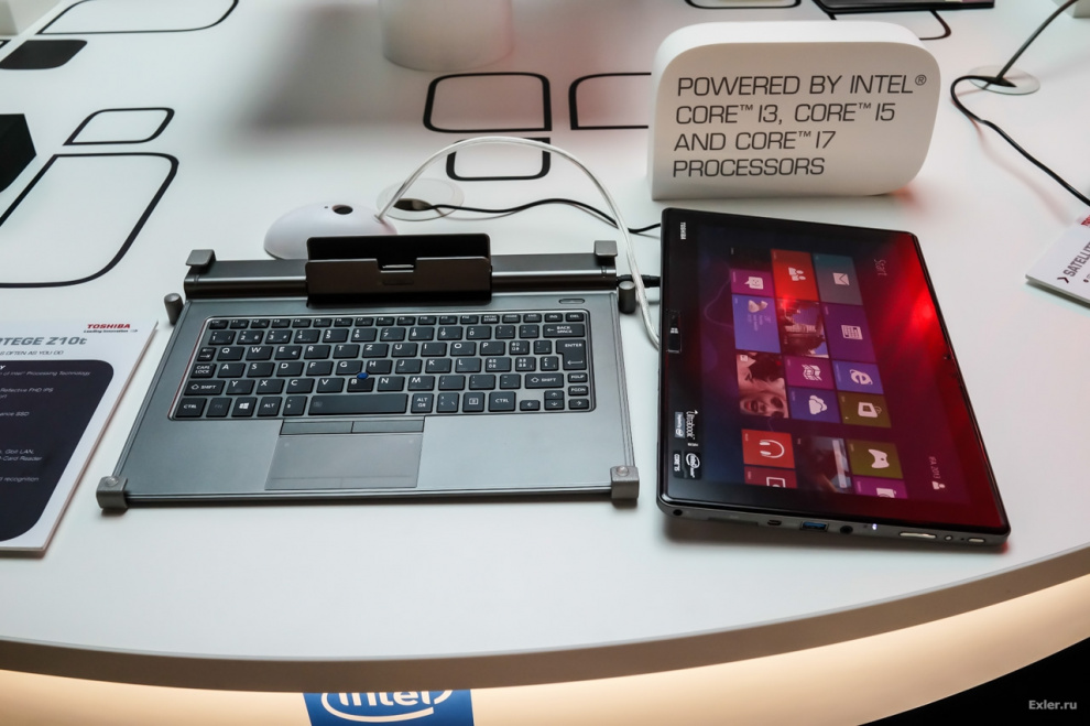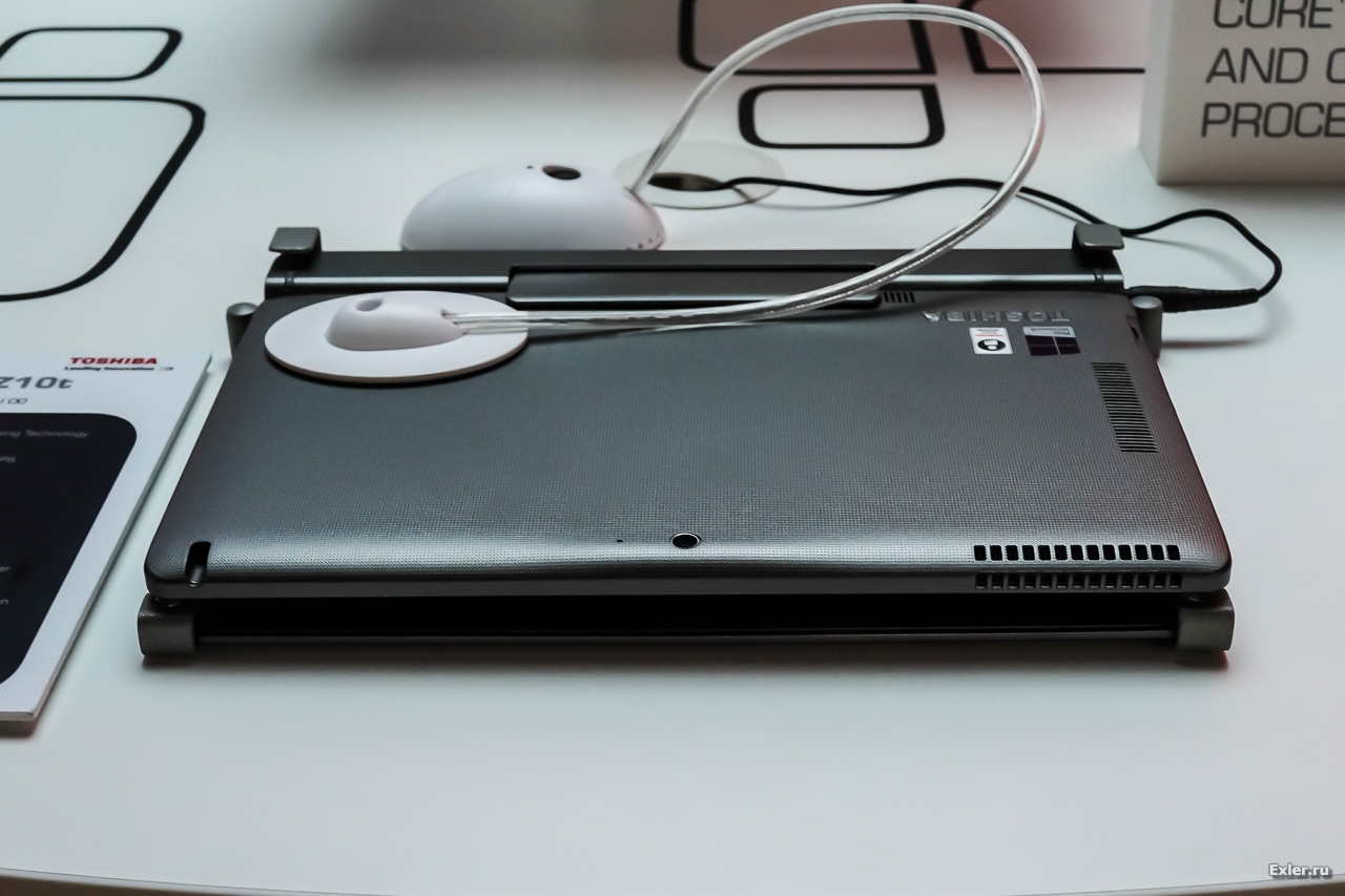 От Toshiba что-то давно ничего интересного видно не было, но я помнил, что они всегда выпускали очень неплохие ноутбуки, поэтому на стенд зашел.
