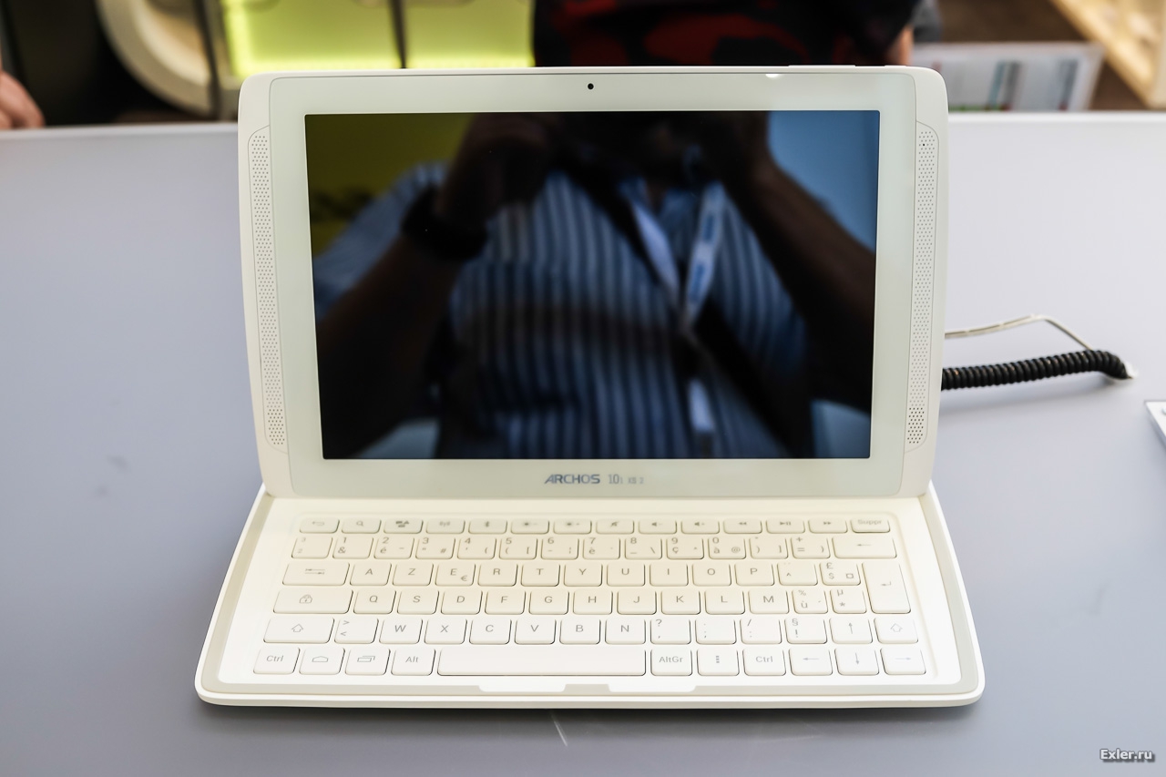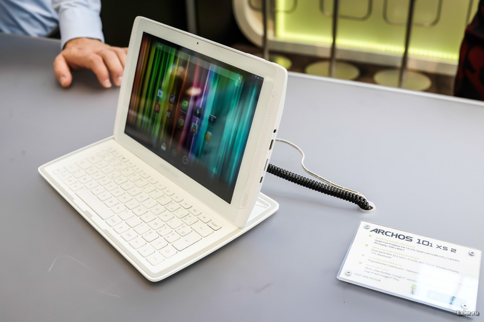 Стенд Archos. Планшет 10.1 X5 2. Фирменный стиль сохранился - выглядит планшет как дешевая поделка. Но, вероятно, будет недорогой по цене. Вот этого у них не отнять.