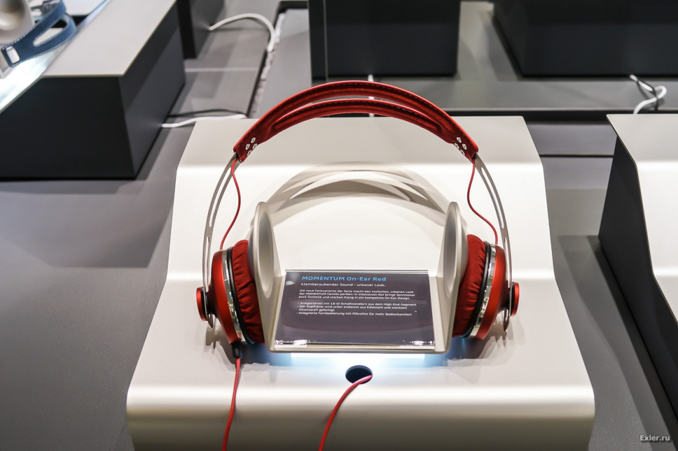 Отдельное спасибо дизайнерам стенда: они сделали все, чтобы выставленную технику невозможно было фотографировать. Приглушенные черно-красные тона, отдельные всплески ламп, бьющих прямо в дисплеи. Ну и как апофеоз - оригинальные и очень стильные светильники прямо над стендами, дающие вот такой интересный эффект.