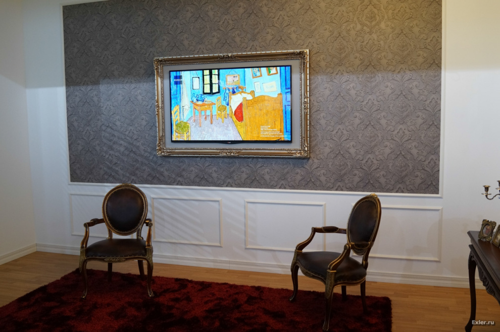 Оригинальное решение - дисплей-картина. Там меняются картины известных художников. Нечто похоже я видел в пабах Дублина: там, правда, всегда демонстрировался Артур Гиннес, который периодически подмигивал почтенной публике.