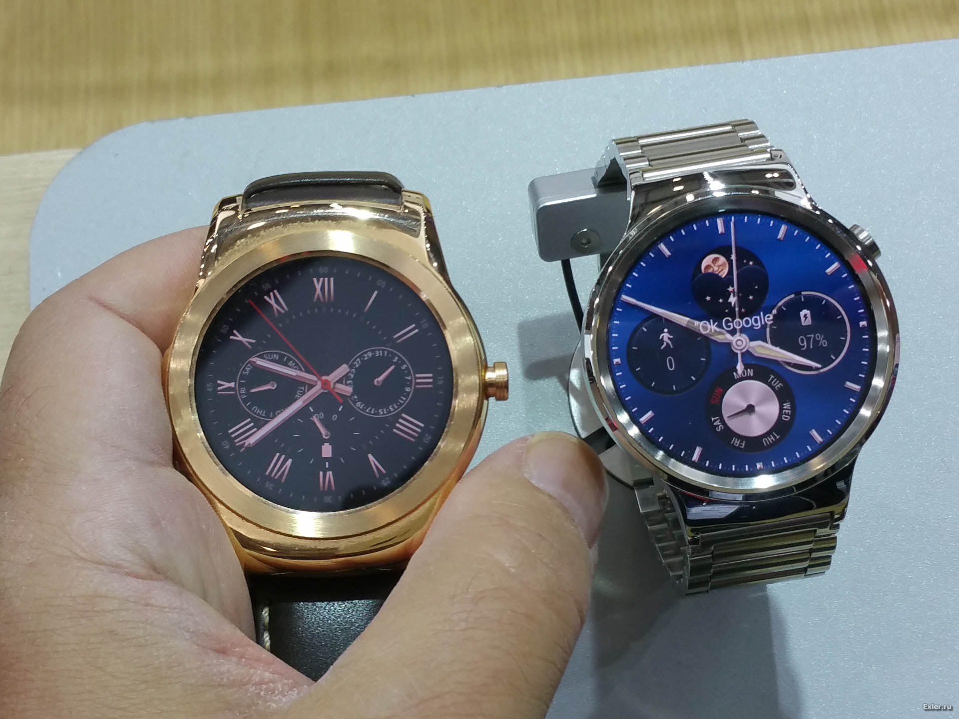 Эти часы рядом с моими LG Watch Urbane. LG выглядят подубовее, эти изящнее. Также у часов Huawei кнопку перенесли немного выше - чтобы избежать случайных нажатий, как говорят. Хотя у меня на Urbane она случайно никогда не нажималась.