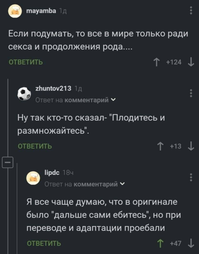 Еще его отец сказал: "Плодитесь и размножайтесь!"