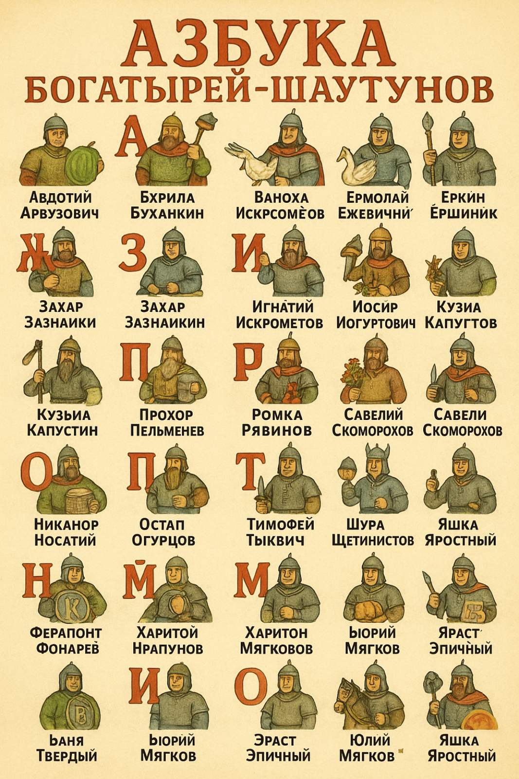 С русскими богатырями смешнее получилось. Бобриня Нытик, Хуесник и Уебык - это прям прекрасно!