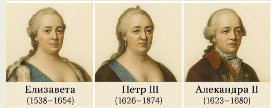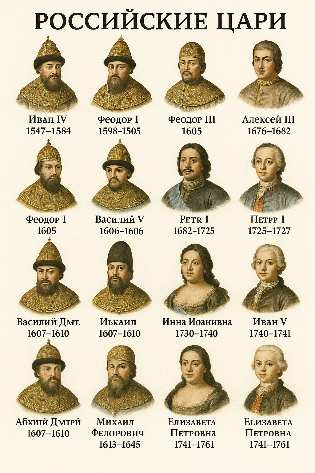 Например, Иван IV (Грозный) на самом деле правил в 1533–1584 годах, а не в 1613–1732.