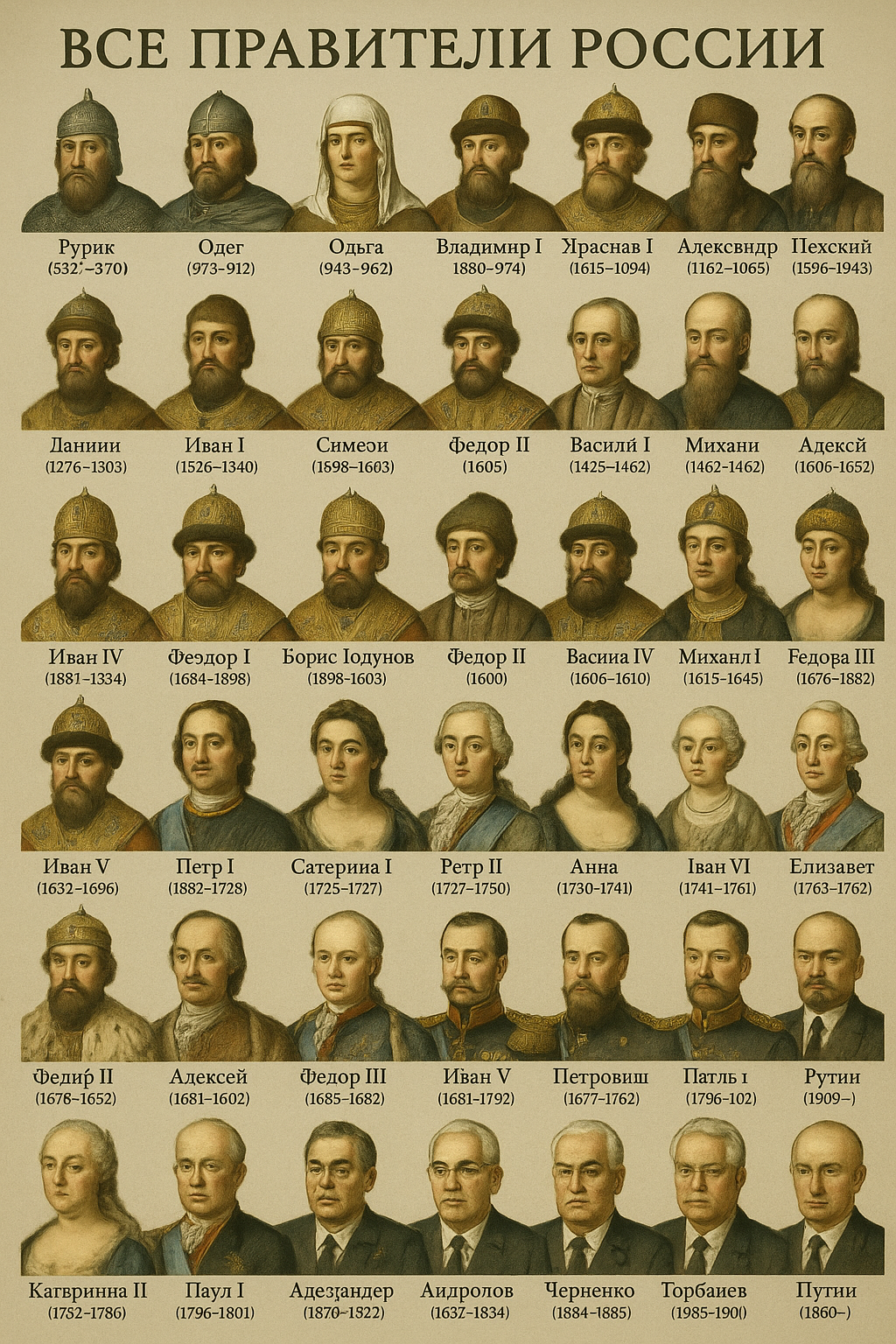 Этот список содержит вымышленные или ошибочные данные о правителях России. Вот почему он не соответствует реальной истории: