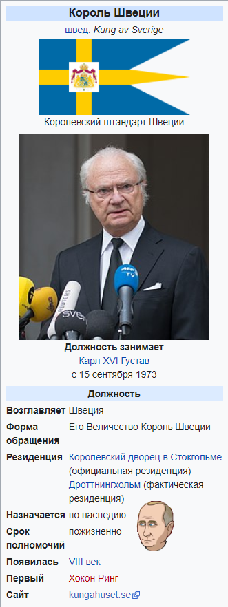 Исполнительная власть Швеции принадлежит правительству, законодательная — народному представительству. Судебная власть Швеции является независимой. И где тут король? ?