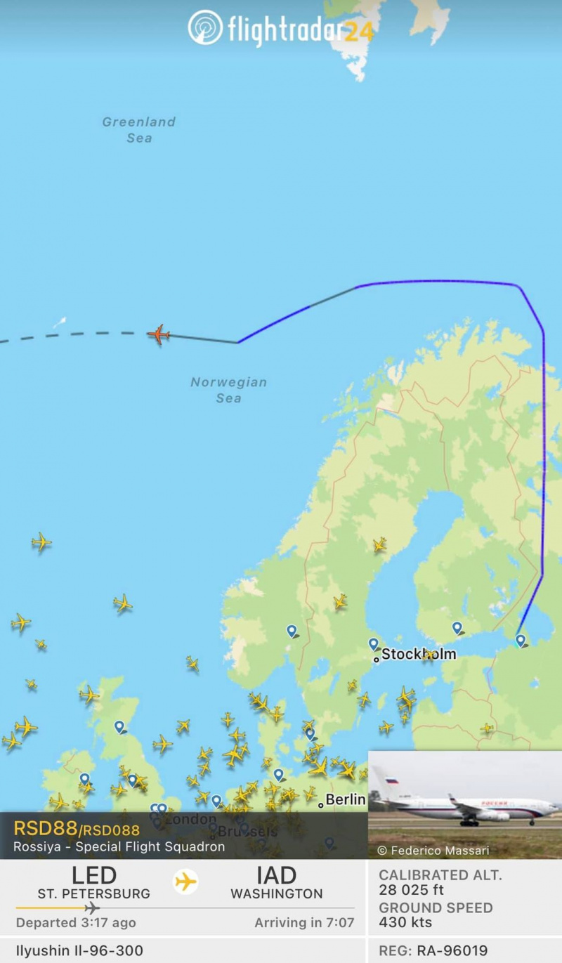 3 часа назад авиалайнер ИЛ-96 из президентского авиаотряда вылетел по маршруту Питер-Вашингтон. Небо США по идее закрыто для российских самолетов. Этот рейс кажется ждут. Кажется полетели договариваться. Это тот самый борт, что летал 3.03 на переговоры в Брест. (Отсюда.)