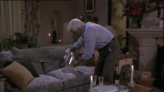 Мужик на сцене в панике подскакивает, лихорадочно натягивая штаны и пытаясь задуть свечку: