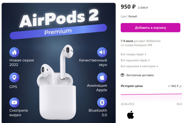 И Apple есть - AirPods 2 за 950 рублей. С логотипом, все как полагается.