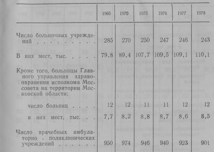 Я не нашел, сколько было больниц и поликлиник в Москве было в 1968 году. Вот цитата с mos.ru: