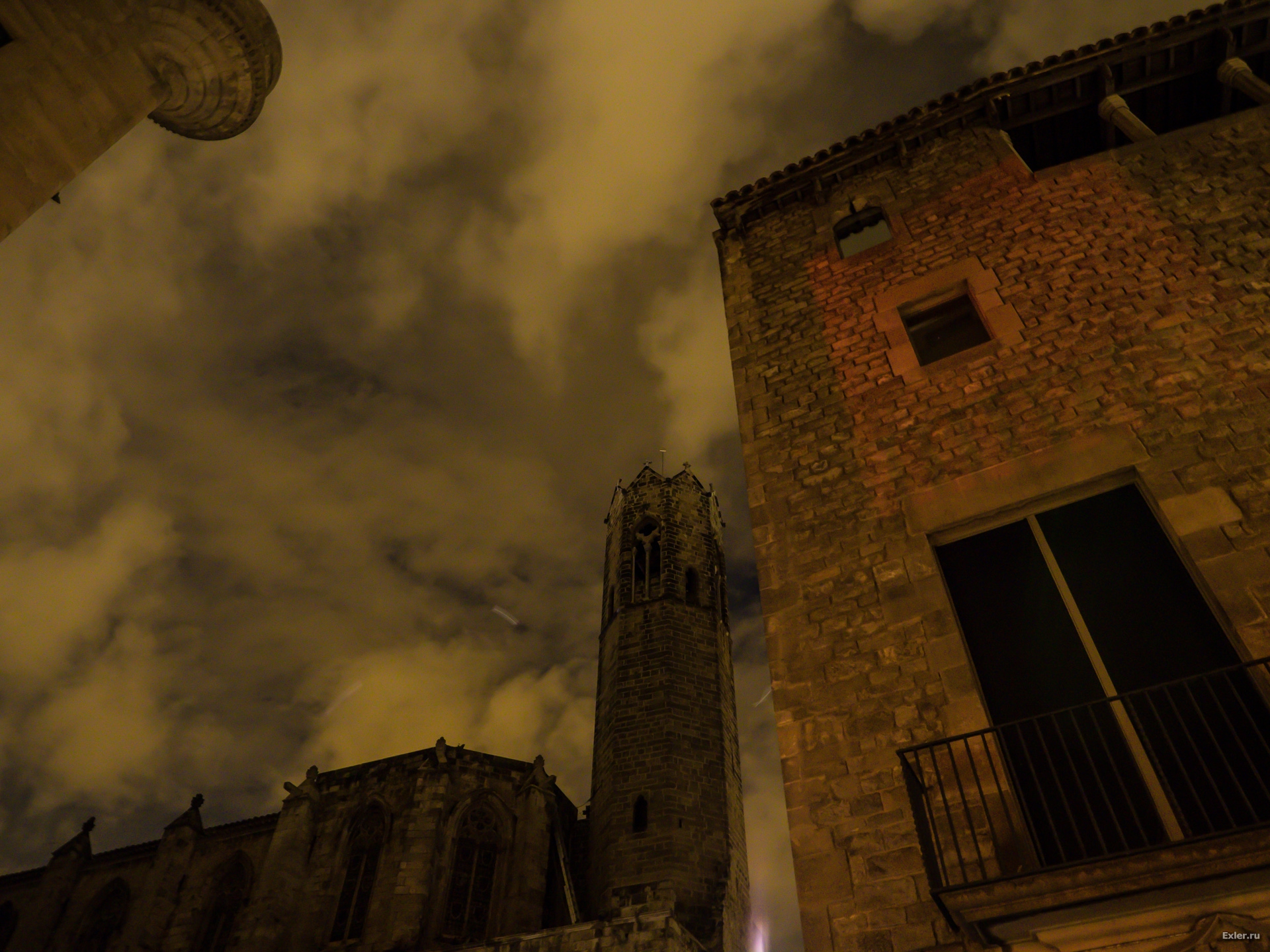 Кстати, кадр ниже вообще никак не обрабатывался - был снят именно так. В темноте с рук. Белые полоски рядом с башней - это летящие птицы, которые подсвечиваются прожектором.