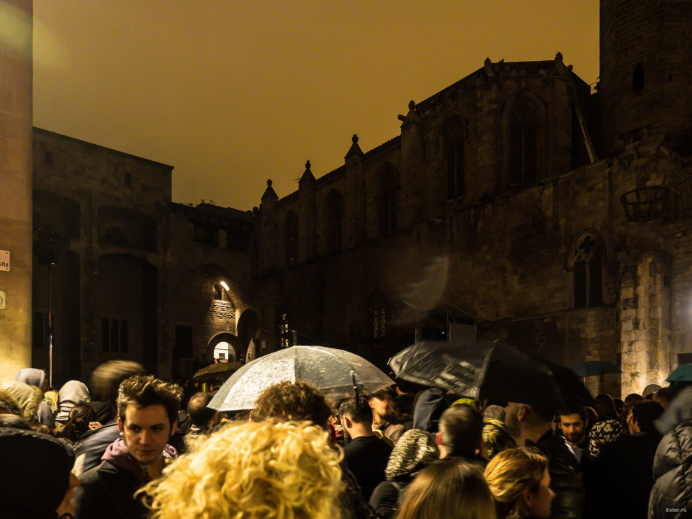 Plaza del Rey. Тут обещали самое крутое световое шоу. Народу было много. Накрапывал дождь. В итоге всех кинули: простояли без толку минут двадцать, ничего так и не показали - объяснили, что у них что-то сломалось.