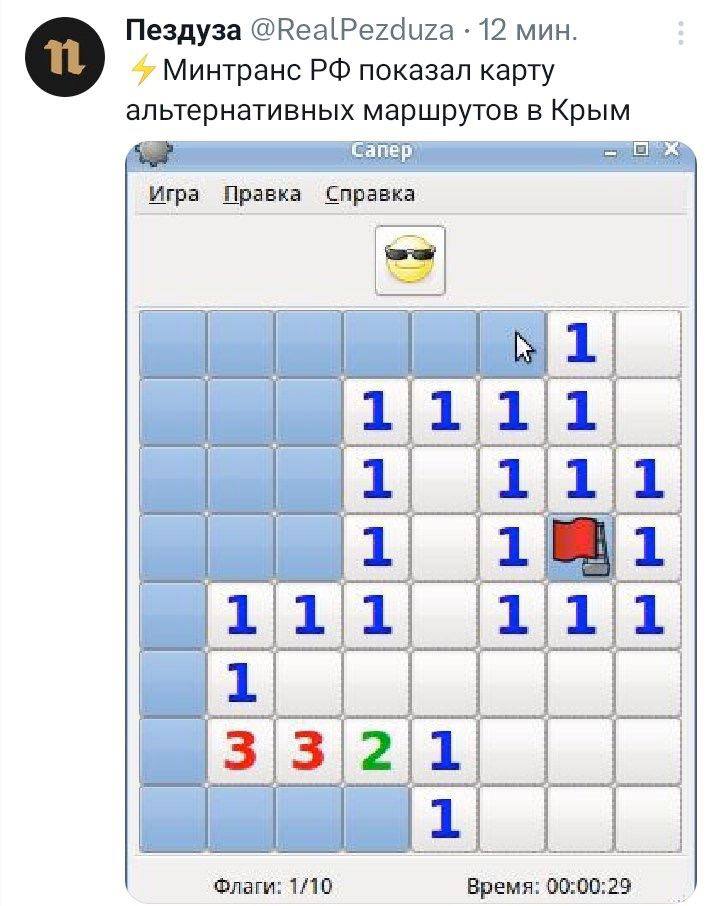 Почему-то особенно смешно от пункта (8), «От Крыма до Ростовской области построена идеально ровная новая дорога».