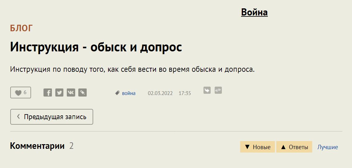 Инструкция по поводу того, как себя вести во время обыска и допроса.