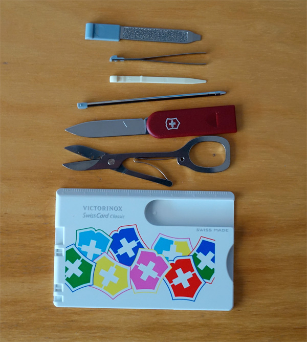 Victorinox Swiss Card штука забавная, но пользоваться ею неудобно. Намного удобнее брелок для ключей: www.victorinox.com/ch/product/Schweizer-Taschenmesser/Kategorie/Classic/Classic-Serie-58-mm/Classic-The-Gift-rot/0.6223.851 , но обязательно с отвёрткой на конце обычно ненужной пилки.