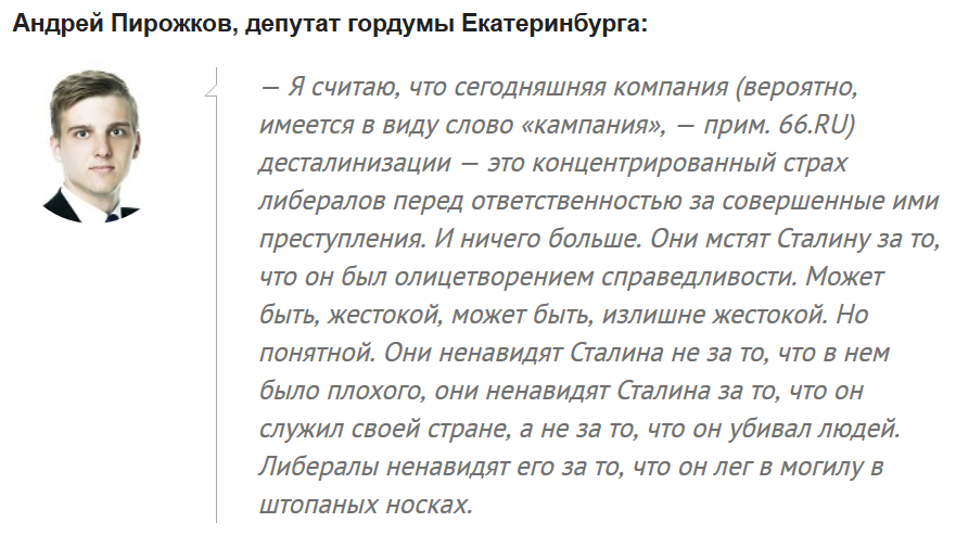 Он там дальше ещё интересней текст выдаёт. Боится он, что нынешнее мерзкое руководство Сталиным заменить придётся. Тоже либерал, значит.