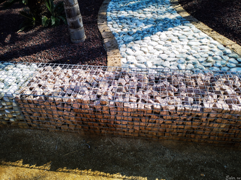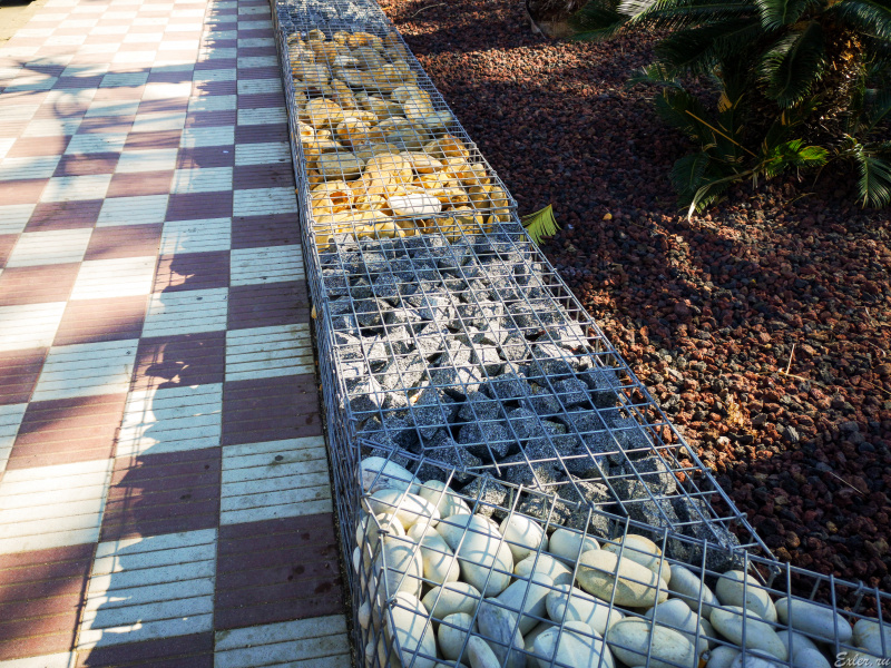 судя по фото - в некоторые габионы уложили некондиционный тротуарный камень