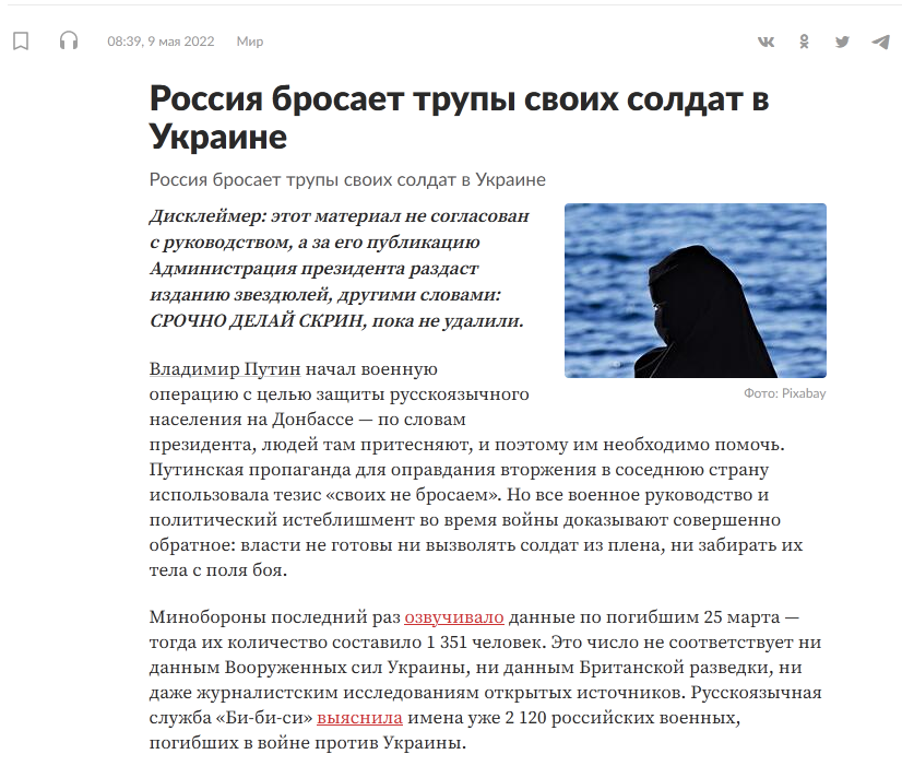 И даже то, что они с началом войны комменты не отключили - кажется, это единственный такой центральный сайт в России, говно-РИА не считая.
