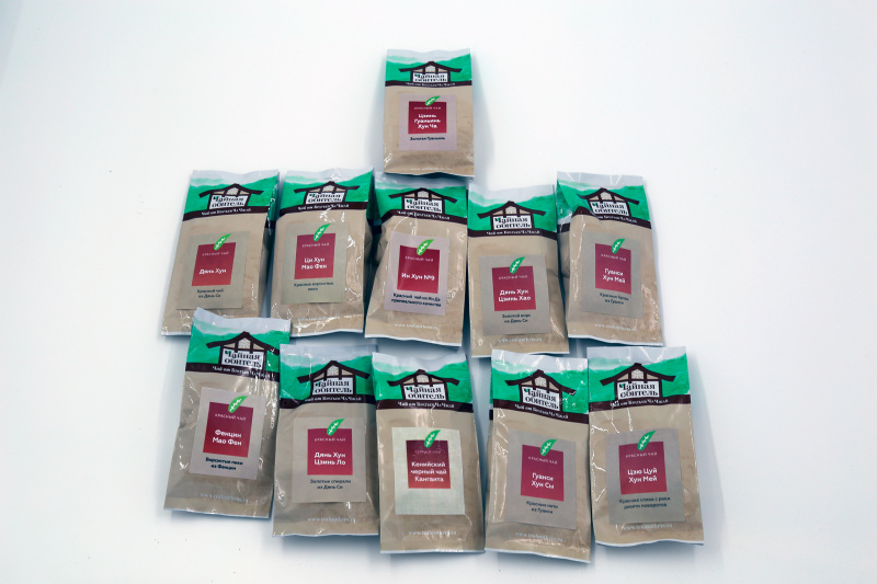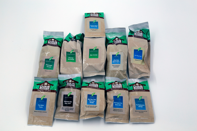 Там в коробке два запаянных пакета - в одном всякие красные, они же черные, чаи из разных регионов. А в другом - несколько улунов и один образец шу пуэра, а также три алтайских травяных чая (не удержался - сам их делаю, живу в горах на Алтае сейчас).