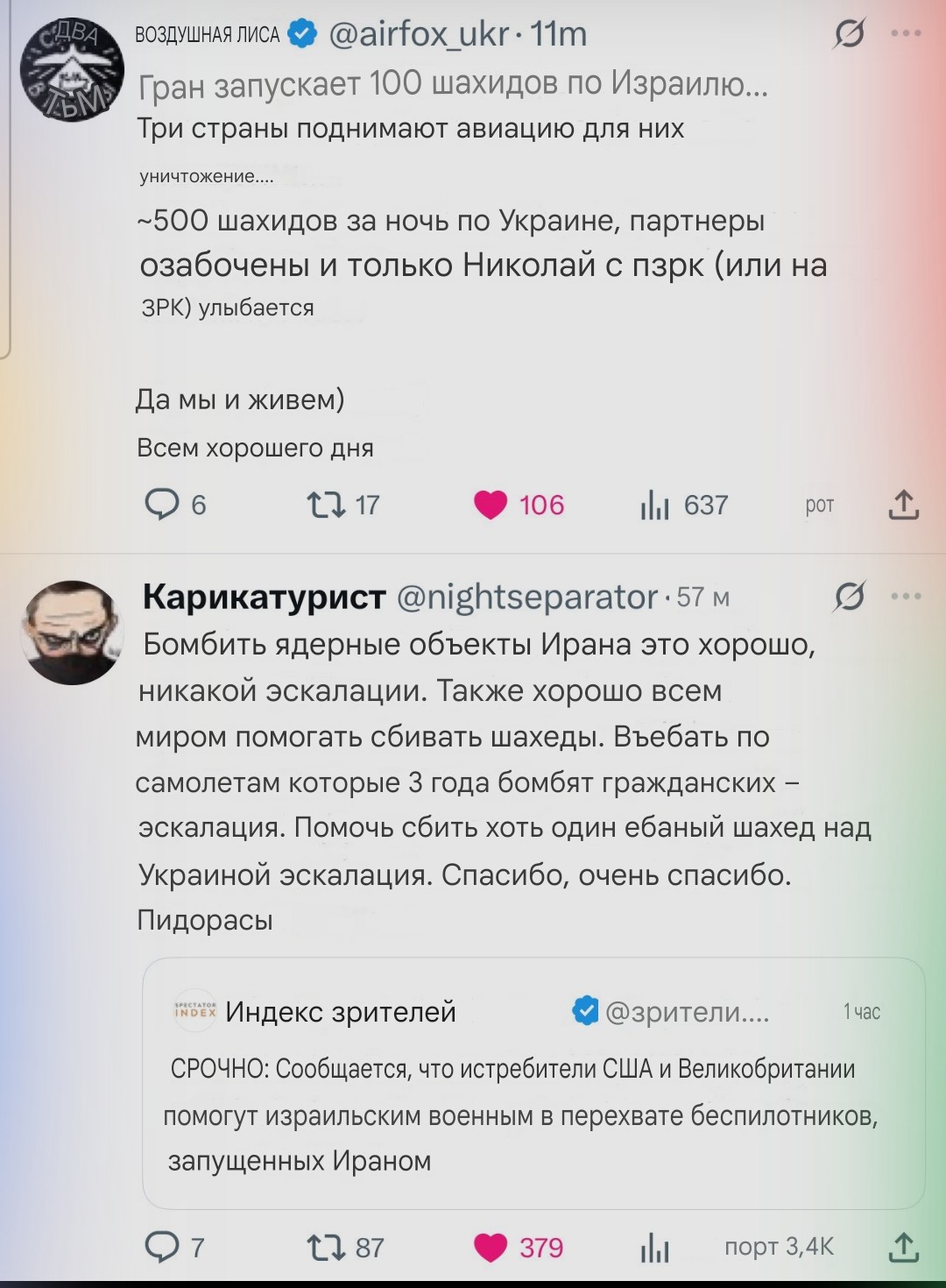 А почему цели из Ирана в сторону Израиля уничтожаются даже не союзниками, а недавними врагами - ну значит в региональную дипломатию мы умеем лучше.