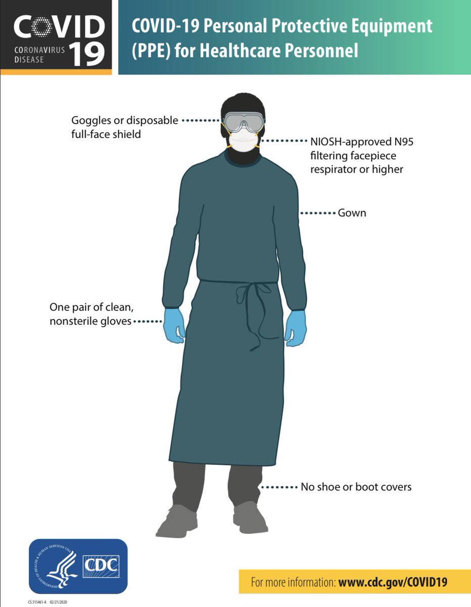 Почитайте про маски со степенью защиты FFP2 или FFP3. Причем если ее надеть на больного, то очки ему не нужны. Перчатки собственно тоже.