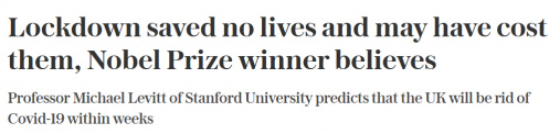 В телеграм-канале "Белковский" ссылка на интервью для The Telegraph лауреата Нобелевской премии по химии, профессора Стэнфордского университета Майкла Левитта - "Lockdown saved no lives and may have cost them, Nobel Prize winner believes".