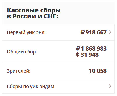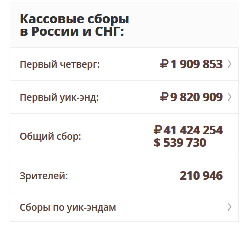 Впрочем, я думаю, что она просто запоздала с прокатов в Штатах. Ведь в России картина прокатилась с небывалым успехом и собрала - смотрим на сайте ЕАИС.