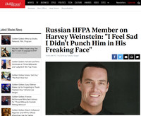 Все это невероятно прелестно. Конечно же, Саша много раз виделся с одним из главных людей в Голливуде за прошедшие 15 лет, кто б сомневался. Еще каких-то пару месяцев назад Саша, просто произнося имя Харви, вытягивался в струнку, выпячивал глаза и попукивал от восторга. А теперь, когда Харви гнобят всем Голливудом (за дело, судя по всему, гнобят, но сути это не меняет), Саша типа как жалеет о том, что не врезал Харви по его уродливой морде. Он очень храбрый, этот парень. Аника-воин. Ну, знаете, такой русский неудержимый. Если бы Саша знал - жертв бы не было, Саша замесил бы Харви и Голливуд носил бы его на руках.