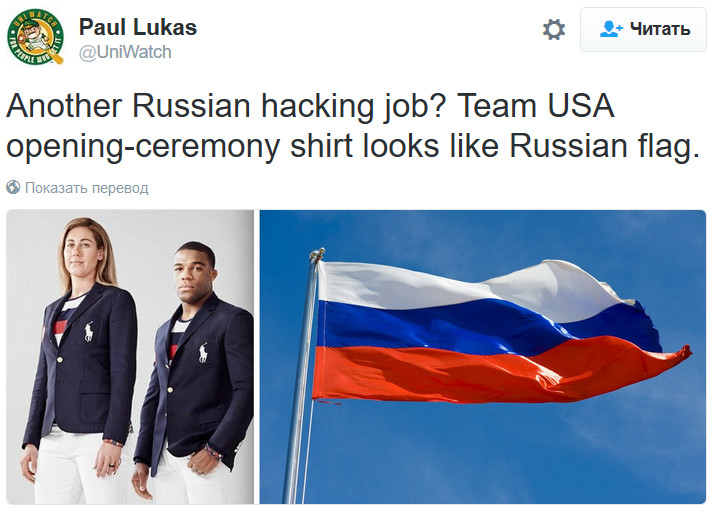 Ральф Лорен тупая жлобская фирма. Одеть олимпийских спортсменов в стандратном старомодном давно приевшемся лореновском стиле, как игроков в поло, с огромным логотипом себя любимых - тут и без росс. флага столько херни наворочено