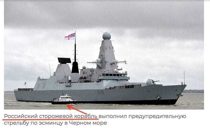 Поскольку украинский корабль могли и потопить, британский запустить было безопаснее. Британцы отчитались о поддержке Украины, Россия отчиталась о границе на замке, все довольны, можно на пляж, вода уже до 25 прогрелась.