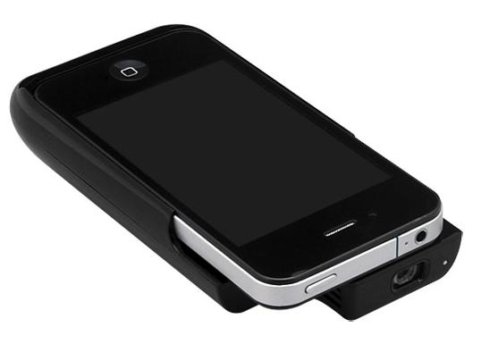 Какая любопытная штука - чехол для iPhone 4 под названием Monolith , он же дополнительная батарея, он же - проектор с яркостью в 12 люменов!