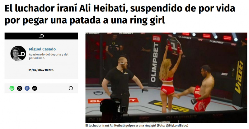 Я как-то, знаете, за боями MMA не слежу, тем более за российским поп-MMA, но тут аж в испанской прессе немало пишут о боевом иранце Али Хейбати, который так зажег во время боя с армянским бойцом Аркадием Осипяном на турнире Hardcore MMA, что это попало во многие СМИ мира.