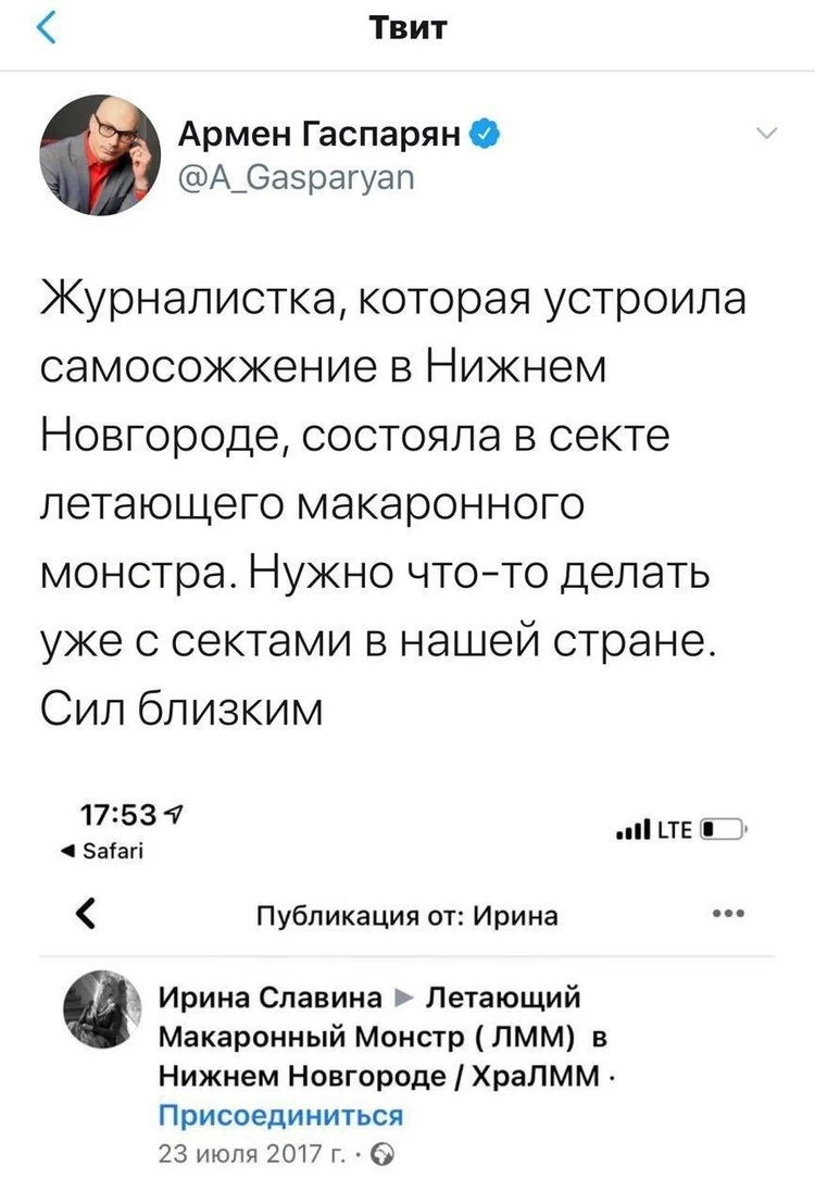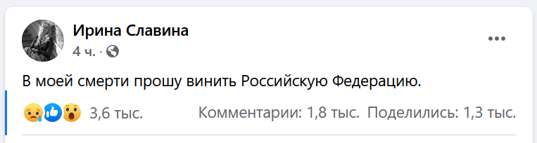 Вчера утром Ирина Славина, главный редактор нижегородского издания KozaPress, написала у себя в Facebook.