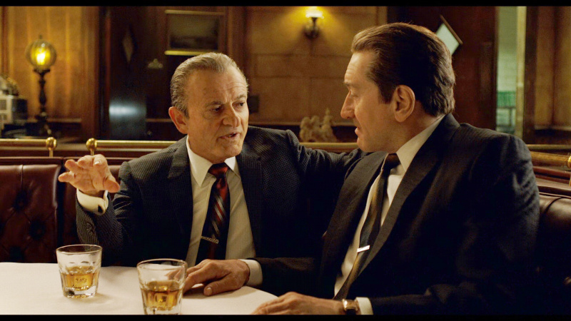За повсеместным обсуждением внешности престарелых актеров, похоже, никто не заметил, что Пачино и ДеНиро не похожи по поведению и внешности на своих героев. Почти полное попадание удалось только с Пеши. Ну, с ДеНиро понятно, он продюсер фильма, его нельзя было не задействовать в фильме. Но зачем Скорсезе позвал в фильм Пачино?