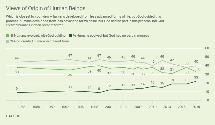 Интересно, что в США тоже не особенно хорошо относятся к теории Дарвина. В 2021 году впервые число сторонников превысило число отвергающих. Последние 35 лет они делились 50/50. Вопрос там ставился по-другому, поэтому не для сравнения, а для информации.